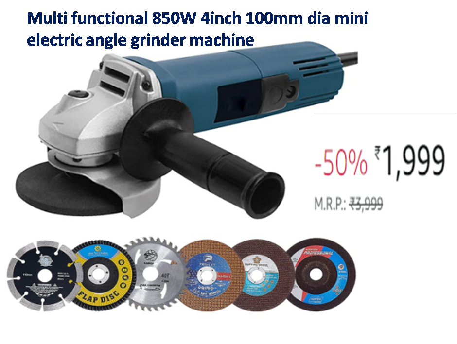 Multi-functional 850W 4inch 100mm dia mini electric angle grinder machine With 6 Pieces Wheels/Discs for Cutting Wood/Metal/Brick/Marble Combo kit (4 Inches, 850W, 11000 Rpm, 220V 50Hz, Color-Multi)